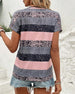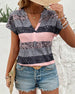 modische bluse mit leopardenmuster und V-ausschnitt sowie patchwork-spitze