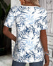 T-Shirt V-Ausschnitt Kurzärmelig Bambusblattdruck