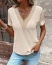 Top Mode einfarbig Häkelspitze Ärmel Patchwork