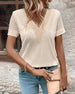 Lässiges, einfarbiges oberteil mit pailletten und v-ausschnitt