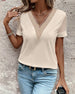 Lässige, einfarbige Bluse mit V-Ausschnitt und Knopf