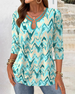 Shirt mit V-Ausschnitt und Laternenärmeln, bedruckt