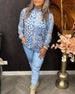 Lose bedruckte Bluse mit langen Ärmeln