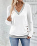 Schlichtes, einfarbiges, elegantes Langarm-Top mit V-Ausschnitt