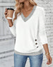 Lässige, einfarbige Bluse mit V-Ausschnitt und Knopf