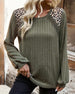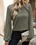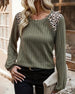 Top Mode einfarbig Häkelspitze Ärmel Patchwork
