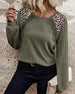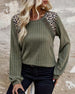 modische bluse mit leopardenmuster und V-ausschnitt sowie patchwork-spitze