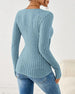 Lässiges, einfarbiges langarmhemd mit v-ausschnitt und knopfleiste