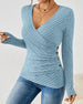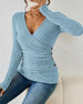 Schlichtes, einfarbiges, elegantes Langarm-Top mit V-Ausschnitt