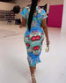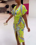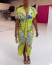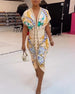 -38% Bedrucktes kleid mit tiefem v-schlitz an der taille
