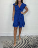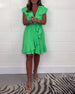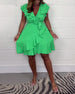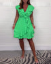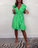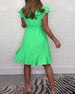 Einfarbiges, tailliertes freizeitkleid mit v-ausschnitt und schmetterlingsärmeln