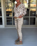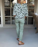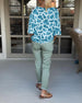 Elegante bedruckte bluse mit v-ausschnitt und fledermausärmeln
