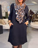 Modisches, langärmliges hüftkleid mit leopardenmuster