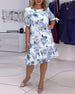 -50% Elegantes Kleid mit Blumendruck und Rundhalsausschnitt