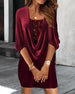 Modisches, einfarbiges, hüftumschließendes kleid mit langen ärmeln und rundhalsausschnitt