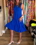 Modisches bedrucktes midikleid mit rundhalsausschnitt