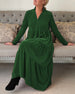 Einfarbiges, tailliertes freizeitkleid mit v-ausschnitt und schmetterlingsärmeln