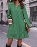 Einfarbiges, tailliertes freizeitkleid mit v-ausschnitt und schmetterlingsärmeln