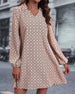 Elegantes bedrucktes Kleid mit V-Ausschnitt und Krawatte