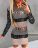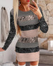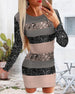 Modisches, langärmliges hüftkleid mit leopardenmuster
