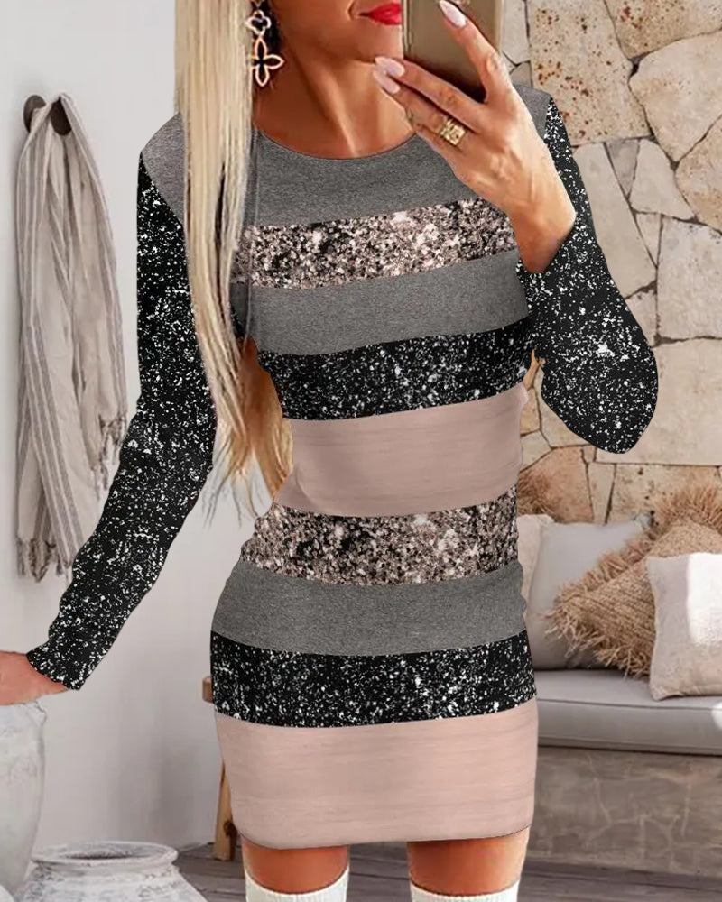 -50% Langarmkleid mit Farbblockdruck