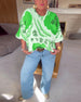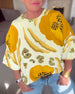 -50% Lässiges, bedrucktes Oberteil mit Rundhalsausschnitt und halben Ärmeln