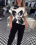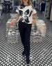 -24% Lässiges T-Shirt mit Rundhalsausschnitt und Blumendruck