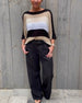 Modische hose in einfarbiger farbe mit unregelmäßigem patchwork und taschen
