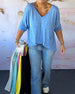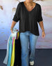 Schlichtes, einfarbiges, lässiges Oberteil mit V-Ausschnitt