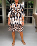 Elegantes bedrucktes Kleid mit V-Ausschnitt und Krawatte
