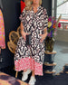 Lockeres kleid mit V-ausschnitt und leopardenmuster