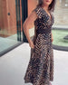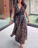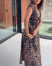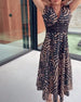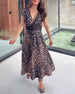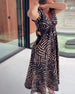 Lockeres kleid mit V-ausschnitt und leopardenmuster