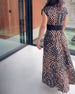 Modisches, langärmliges hüftkleid mit leopardenmuster