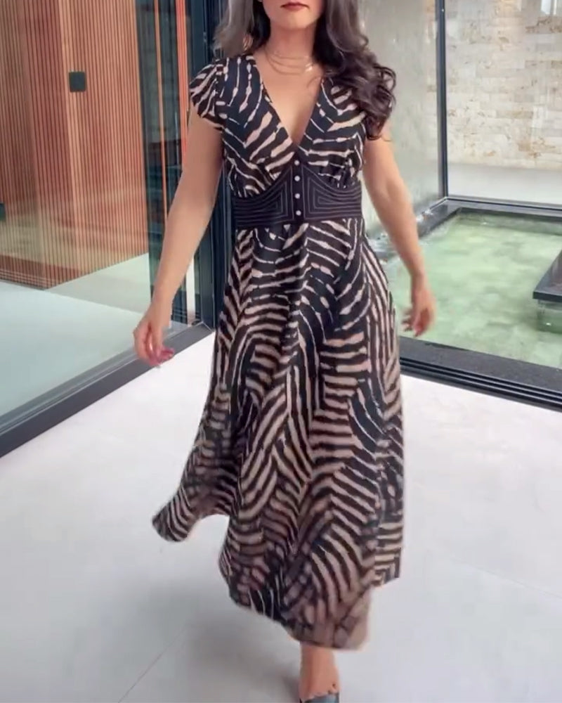 Lässiges bedrucktes Kleid mit kurzen Ärmeln