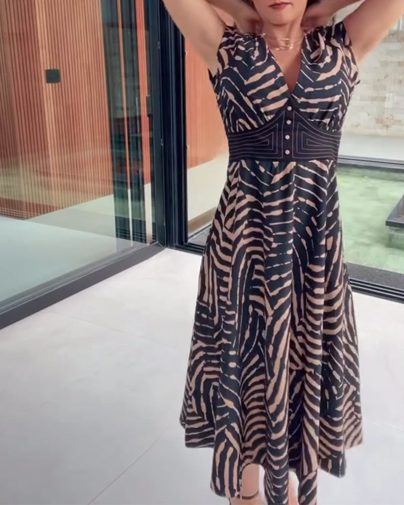 Lässiges Kleid mit V-Ausschnitt und Retro-Print