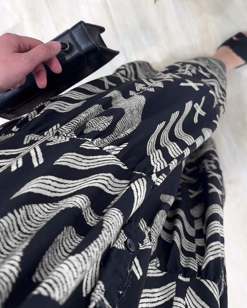 Lässiges Kleid mit V-Ausschnitt und Retro-Print