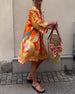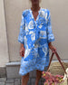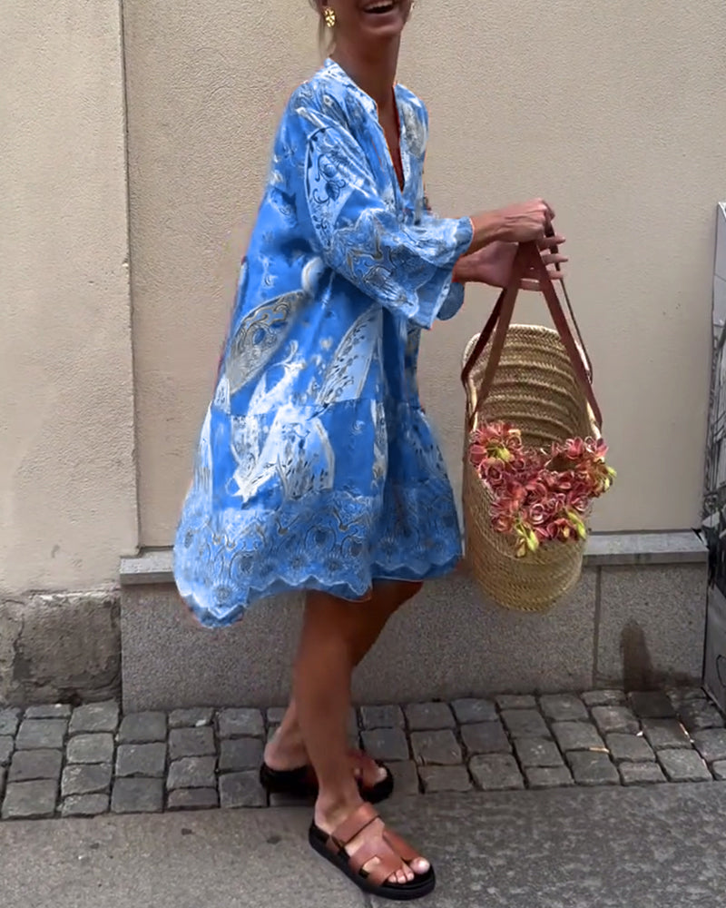 Lässiges Kleid mit V-Ausschnitt und Retro-Print