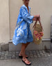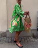 Elegantes bedrucktes Kleid mit V-Ausschnitt und Krawatte