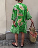 Kurzärmliges Schlitzkleid mit Blattmuster