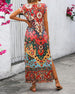 Bunt bedrucktes Freizeitkleid mit Schlitzen