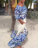 Elegantes bedrucktes Kleid mit V-Ausschnitt und Krawatte