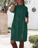 Einfarbiges kleid mit rundhalsausschnitt und langen ärmeln und tasche