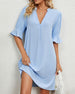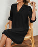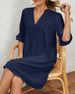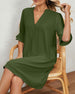 Einfarbig gerafftes Kleid mit halben Ärmeln und V-Ausschnitt