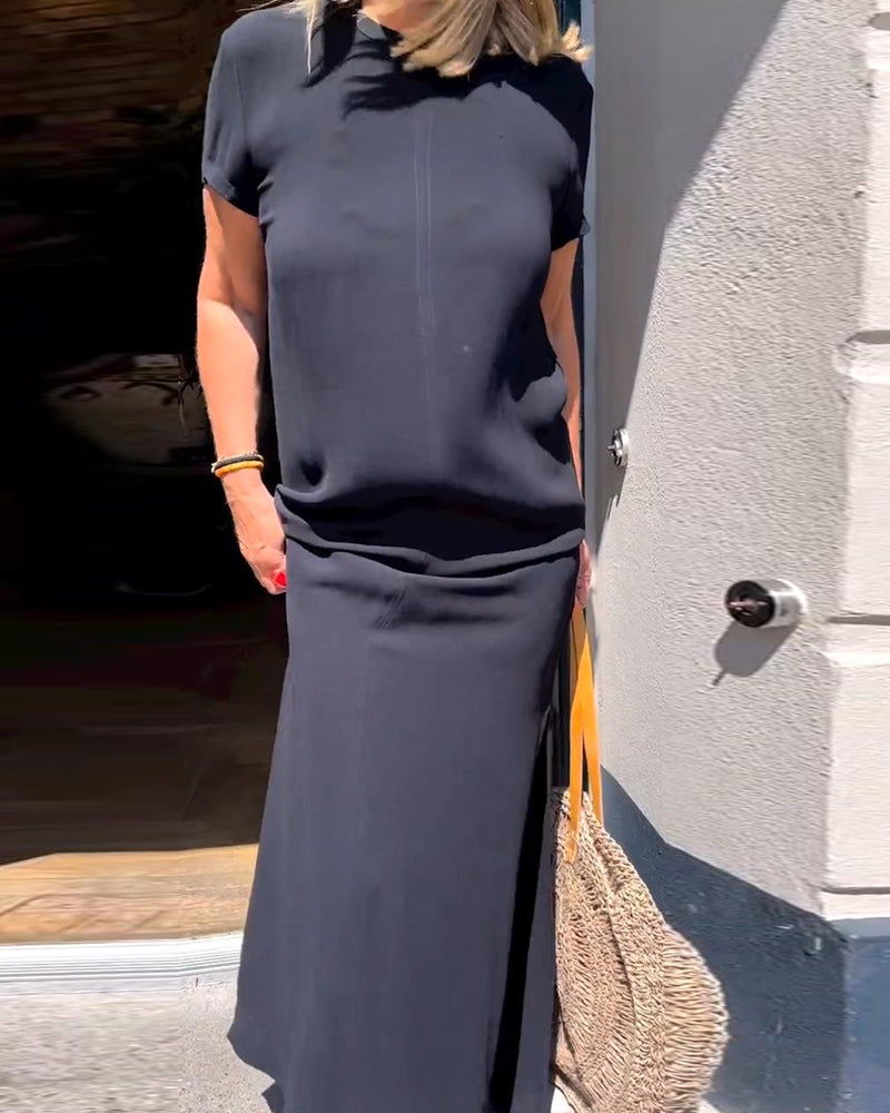Kleid lässig Rundhals Schlitz Persönlichkeit Design