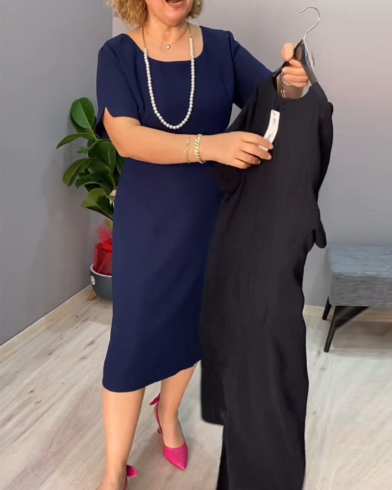 Kleid lässig Rundhals Schlitz Persönlichkeit Design
