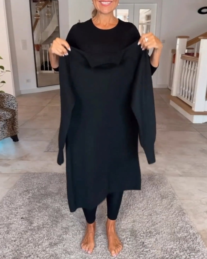 Kleid lässig Rundhals Schlitz Persönlichkeit Design