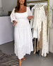 Einfarbiges, hohles Kleid mit eckigem Kragen