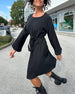 Kleid mit langen Ärmeln und Tasche im Farbblockdesign