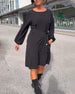 Kleid mit V-Ausschnitt und Laternenärmeln, schmal