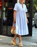 Einfarbiges, kurzärmeliges, plissiertes Patchwork-Kleid